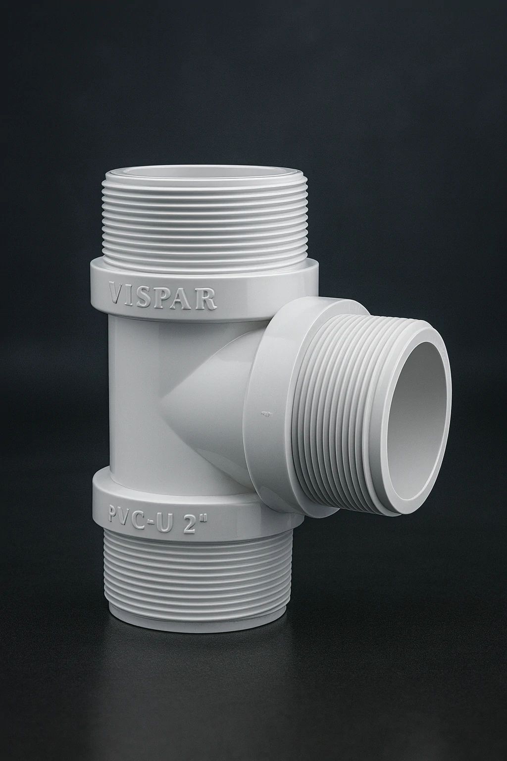 سه راه نر پلیمری ویسپار اتصالی رزوه‌ای از جنس UPVC با تحمل فشار کاری 16 بار است که برای انشعاب‌گیری و اتصال لوله‌ها به تجهیزات رزوه مادگی به‌کار می‌رود. این قطعه سبک، ضدخوردگی و مقاوم در برابر مواد شیمیایی است و نسبت به نمونه‌های فلزی، نصب آسان‌تر و طول عمر بیشتری دارد.